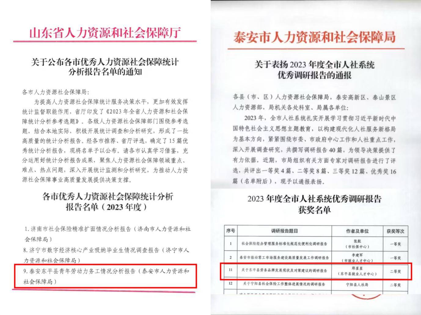 积极推动“社区微业 乐业泰山”步履,竖立劳动服务驿站10处。东平街谈赵桥社区、彭集街谈后亭社区、老湖镇凤凰社区、大羊镇西王社区4个劳动责任成效昭着的城乡社区,获评全市高质地充分劳动社区。劳动服务责任相干作念法在新华社、《光明日报》客户端专题报谈。《东平县后生劳能源务工情况分析申报》被省东谈主社厅细则为2023年度优秀统计分析申报;《对于东平县劳务品牌发展近况及对策提倡的调研申报》被评为2023年度全市东谈主社系统优秀调研申报二等奖。