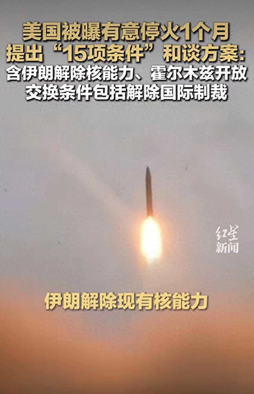据以色列第12频说念电视台24日征引知情东说念主士音信报说念,好意思国向伊朗提议的一份旨在罢休干戈的条约涵盖15个重点,其中包括伊朗得意永不发展核兵器、洞开霍尔木兹海峡为“开脱海域”等。