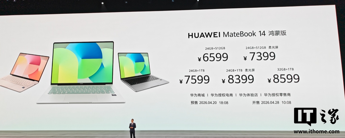 在华为 Pura 系列及全场景新品发布会上,华为结尾 BG CEO 何刚进展发布了 MateBook 14 鸿蒙版条记本,起售价为 6599 元。这款条记本是华为条记本居品线中首款搭载鸿蒙系统的居品,记号着华为在条记环节域迈出了庞大一步。